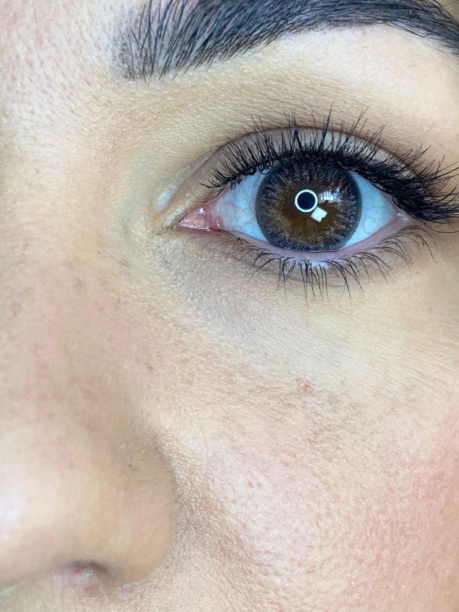 - Using the tip of your index finger of your dominant hand, pull the lens down and slide it to the lower white part of the eye.